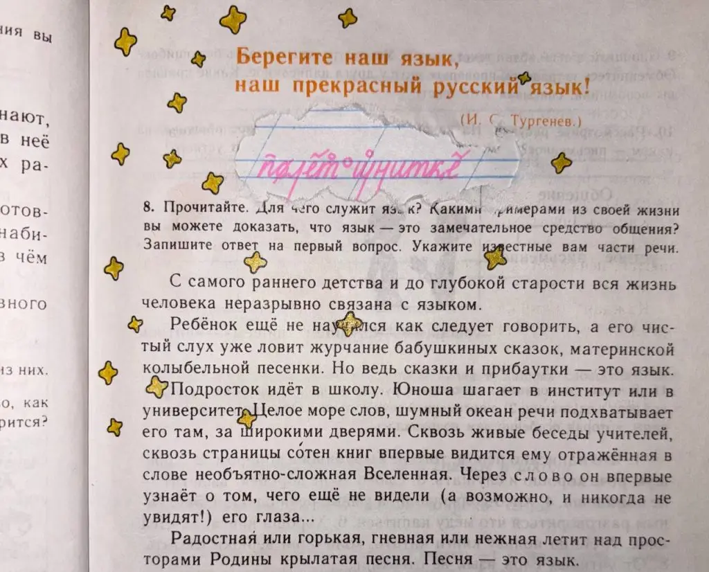 После подрезания уздечки начались долгие и мучительные занятия с логопедом (букву «р» мне исправили в первый же год, но все шипящие я научилась говорить только в семнадцать лет). Мой папа всегда очень любил русский* язык и ужасно мучался, что не мог меня понять, и что я говорила хуй пойми как. Он очень переживал за меня, поэтому почти любой наш разговор до семнадцати лет был наполнен попытками мне помочь, поправить меня.