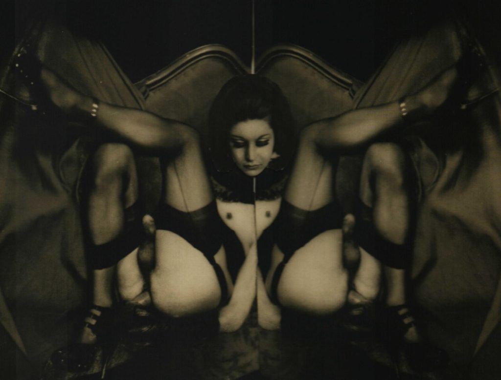 Обсессивное умножение изолированных конечностей было присуще другому автору, близкому сюрреалистам — художнику и фотографу Пьеру Молинье (1900-1976), «наполовину мужчине, наполовину женщине или обоим сразу» [Molinier 2010; 360] или, как его характеризовал исследователь Жан-Люк Мерсье, «ментальному гермафродиту и вуайеристу, движимому похотью к самому себе» [Molinier 2010; 21]. Известно множество его фотомонтажей, фокусирующихся на умножении ног, рук и ягодиц и стирающих гендер. Гиносексуальность В данной статье под гиносексуальностью мы понимаем сексуальное влечение к феминности независимо от биологического пола или возраста объекта влечения Молинье выражалась в стремлении не только запечатлевать феминное в его мужских и женских моделях, но и самому наделять себя чертами объекта желания. Главным лейтмотивом его работ становятся ноги в чулках и ягодицы. Примечательно, что для Молинье — автора крайне чуткого к амбивалентности сексуального влечения и стремления к смерти — фиксация на ногах и их экстремальная эстетизация стали своеобразной стратегией ускользания, дающей ему возможность поддерживать жизнь альтер-эго, «волшебной девочки». В письме к одной из своих муз 67-летний автор писал: «ничего не осталось от моей юности, может, разве что-то в моих ногах» [Molinier 2010; 354].
