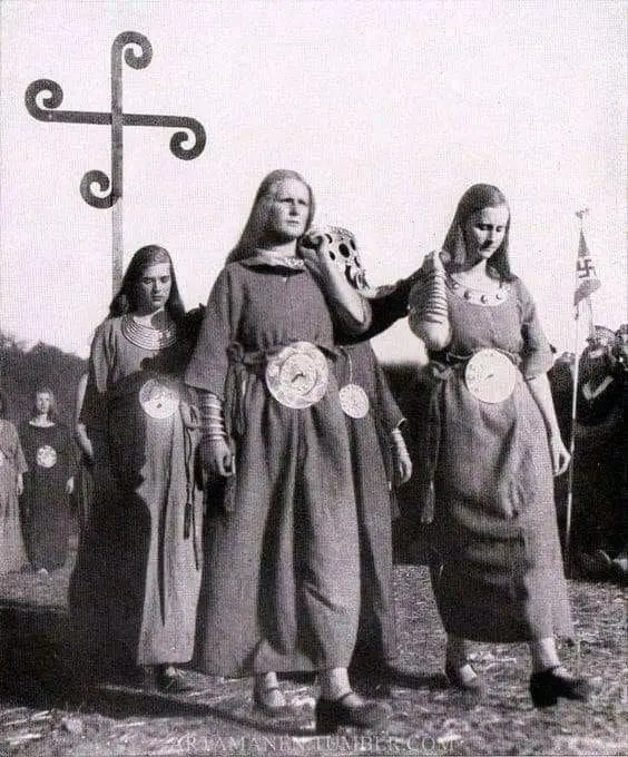 Искусствовед и писательница Маргарита Курльбаум-Зиберт винила в уничтожении «миллионов нордических женщин» евреев и космополитных католиков. Баварский историк Антон Майер утверждал, что все индоевропейские религии коренятся в древнегерманском культе матери-земли. Фольклорист Арнольд Руге описывал ведовские процессы как способ церковников вести политическую борьбу против немецкой нации и народного самосознания.